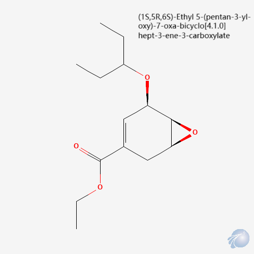• Előnyben részesített IUPAC-név: Etil-(1S,5R,6S)-7-oxabiciklo[4.1.0]hept-3-én-3-karboxilát 5-(3-pentoxi) származék/ POBC-etil-észter/Királis oxabicikloheptén-karboxilát/Sztereospecifikus epoxi-ciklohexén származék