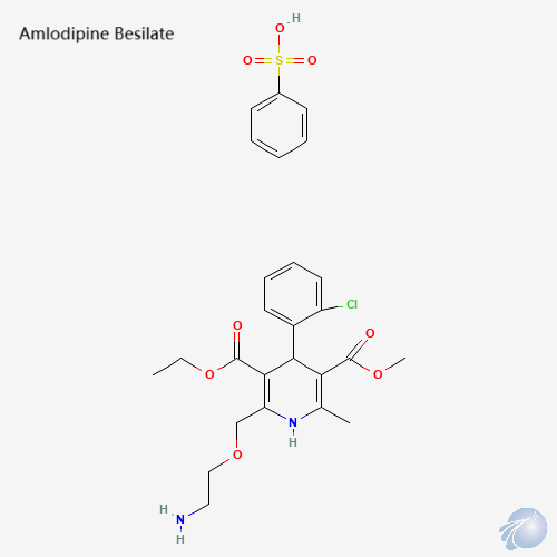 - Preferred IUPAC Name: Norvasc besilate/UK-48340-11/Amlodipine besilate (crystalline)/2-[(2-Aminoethoxy)methyl]-4-(2-chlorophenyl)-1,4-dihydro-6-methyl-3,5-pyridinedicarboxylic acid 3-ethyl 5-methyl ester benzenesulfonate