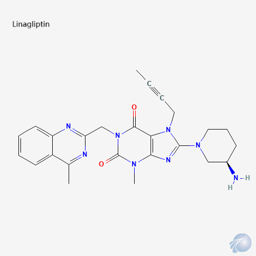 - IUPAC: 8-[(3R)-3-aminopiperidin-1-yl]-7-but-2-ynyl-3-methyl-1-[(4-methylquinazolin-2-yl)methyl]purine-2,6-dione