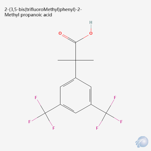 • Preferred IUPAC Name: α,α-Dimethyl-3,5-bis(trifluoromethyl)benzenacetic acid/2-Methyl-2-[3,5-bis(trifluoromethyl)phenyl]propionic acid/3,5-Bis(trifluoromethyl)-α,α-dimethylbenzenacetic acid/BTMPA (abbreviated form)/Hexafluoro-dimethylphenylpropionic acid