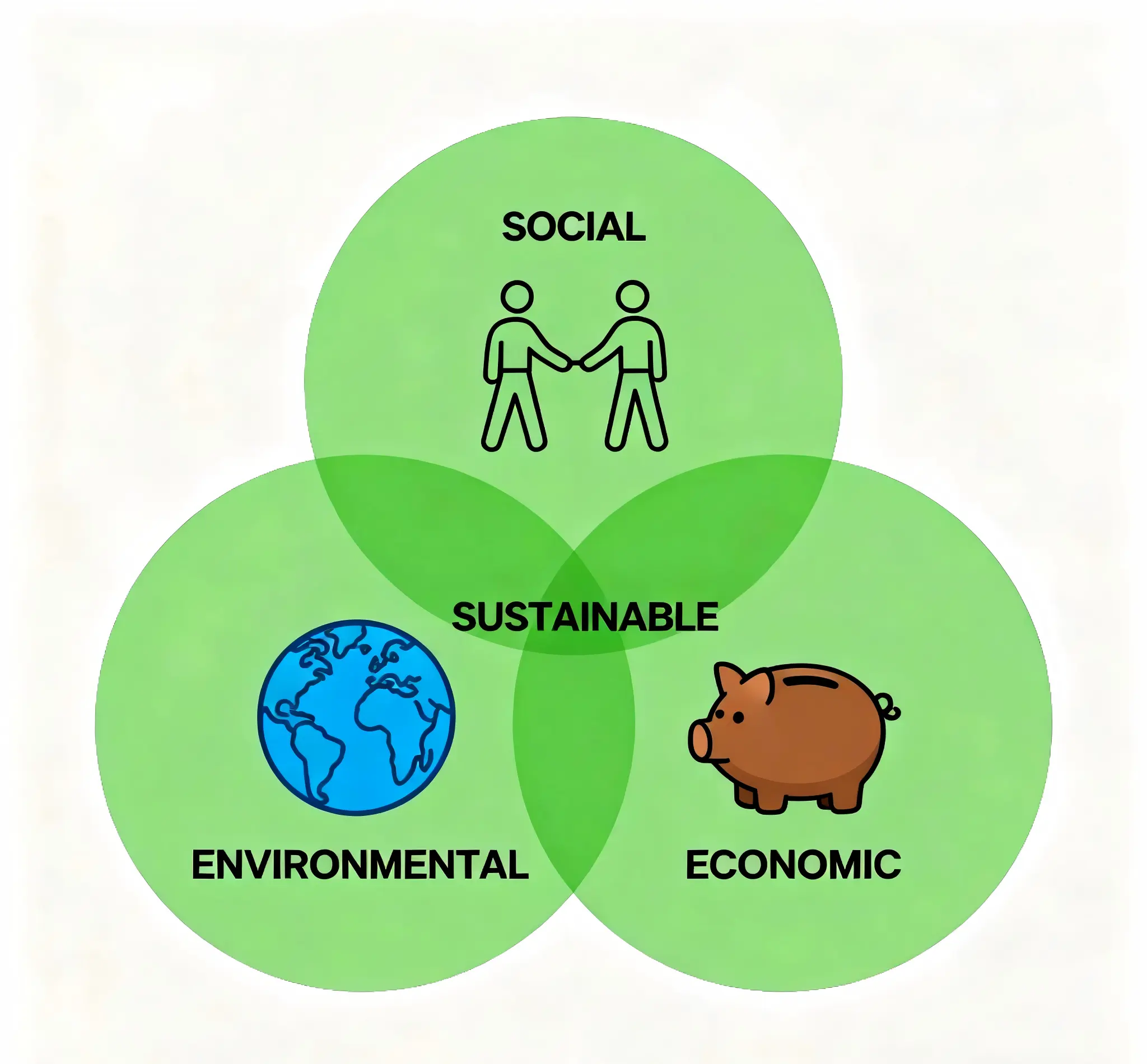 All employees are encouraged to actively contribute to these pillars within their roles, integrating sustainability into daily operations and decision-making to collectively achieve the overarching goal.